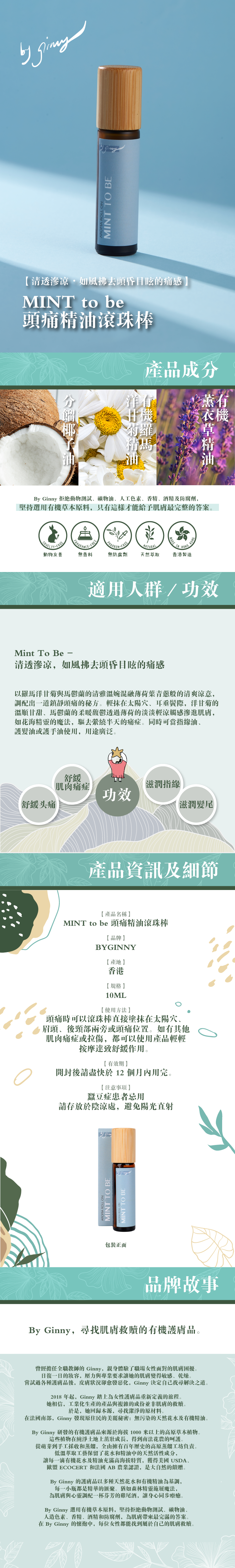 用法:以滾珠直接塗抹在頭部需要位置、頸部兩旁,或其他痛楚位置。如有其他肌肉痛症,都可以使用Mint To Be輕輕按摩達致舒緩作用。